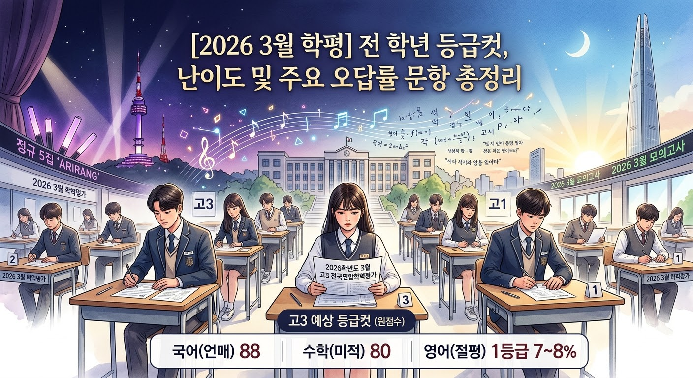 특히 이번 3월 학평은 선택 과목별 유불리 현상과 '킬러 문항' 배제 원칙이 적용된 변별력 확보 양상을 뚜렷하게 보여주었습니다. 오늘 포스팅에서는 각 학년별 예상 등급컷 수치, 과목별 체감 난이도, 그리고 이번 시험 이후 반드시 챙겨야 할 학습 전략을 팩트 기반으로 상세히 분석해 드립니다.